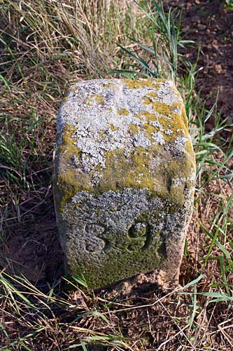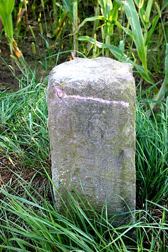Auf Grenzlinien die über Ackergelände führen, findet man leider oft keine Grenzsteine mehr. Wenn sie nicht vergraben oder zerstört sind, wurden sie im Lauf der Jahre meist entfernt.